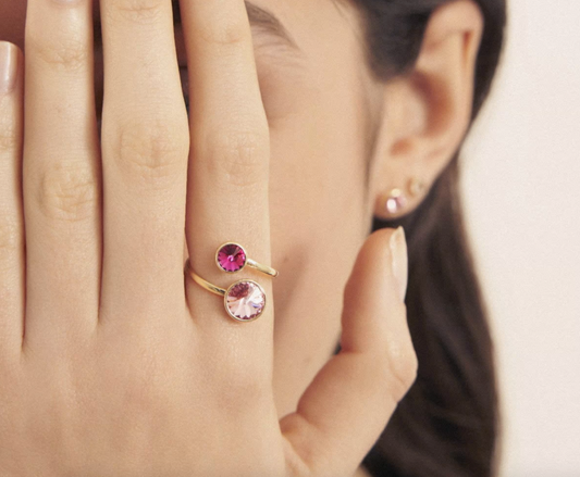 Anillo cruzado fuchsia y light rose XS de Basic bañado en oro