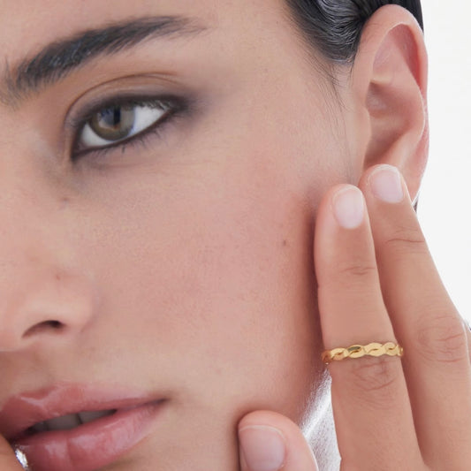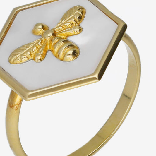 Anillo hexagonal nacar con abeja bañado en oro de Honey