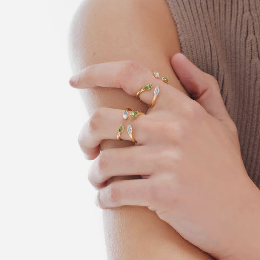 Anillo ajustable cruz cristal en plata baño oro de paris (peridot)