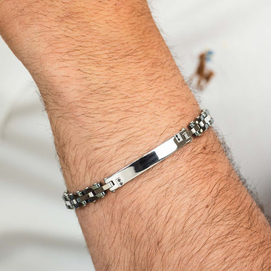Pulsera con correas rígidas, placa central e inserciones negras Acero Inoxidable Boccadamo Man ABR733