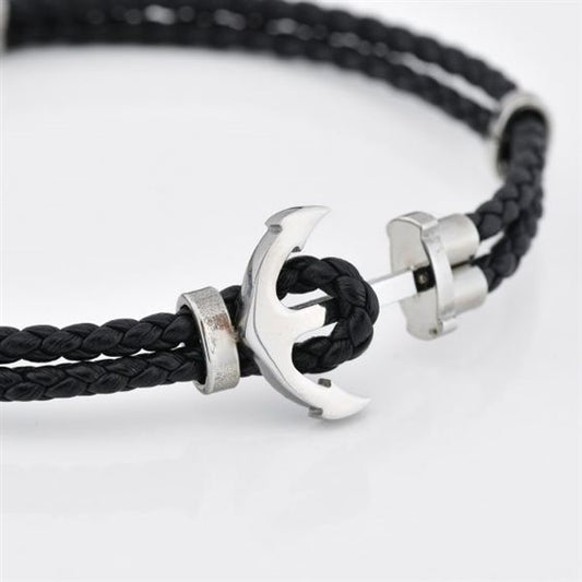 Pulsera Trenzada Timón Negro en Acero Inoxidable ABR706N