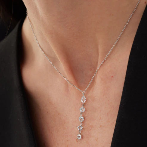 Collar corto lágrima cristal rojo en Plata baño rodio de Essential