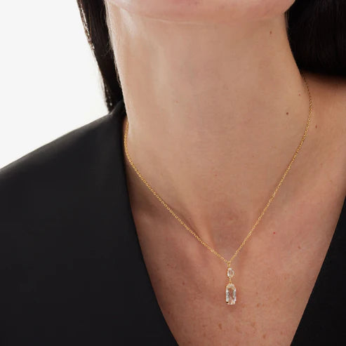 Collar corto rectángulo cristal en Plata baño Oro de Inspire