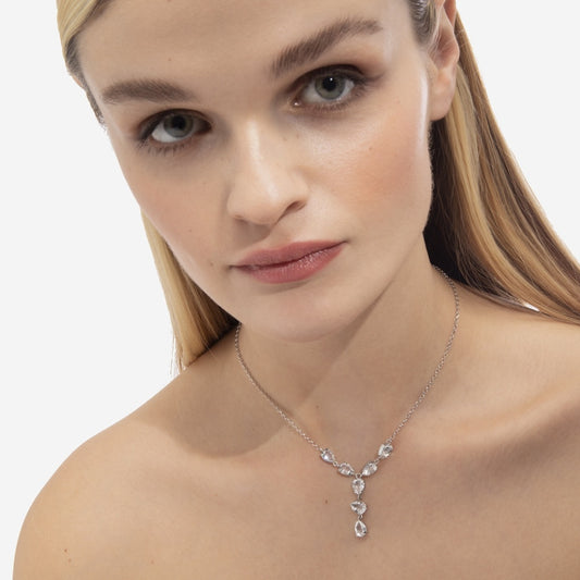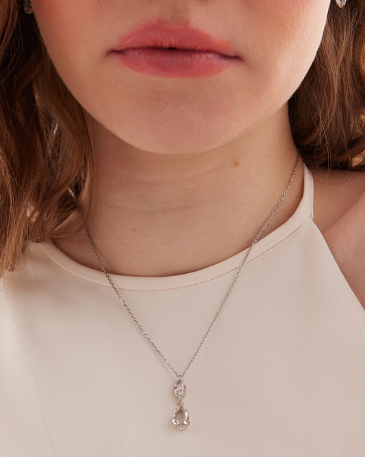 Collar corto Magnolia lágrima cristal blanco en Plata baño rodio