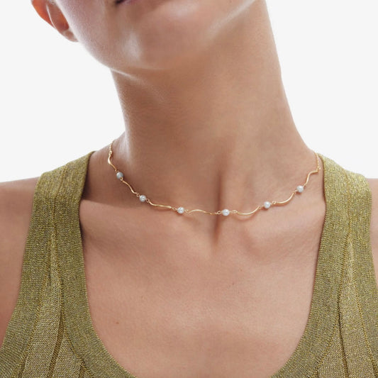 Collar ondas con perlas bañado en oro