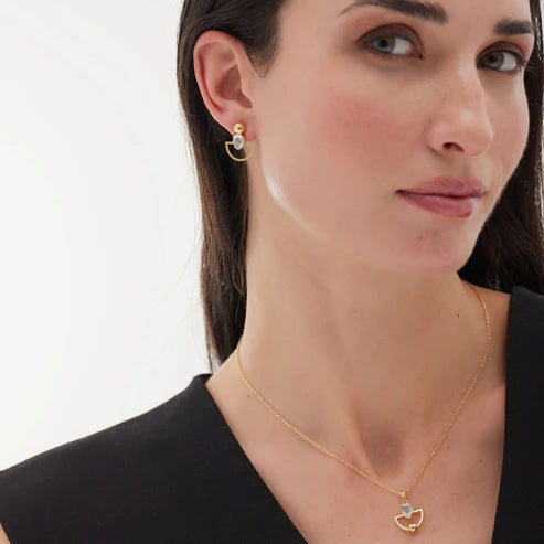 Collar corto White abanico Buongiorno con cristal en Plata baño Oro