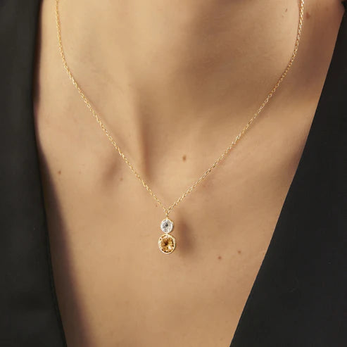 Collar corto cristal en Plata baño Oro de Fadhila Light Topaz