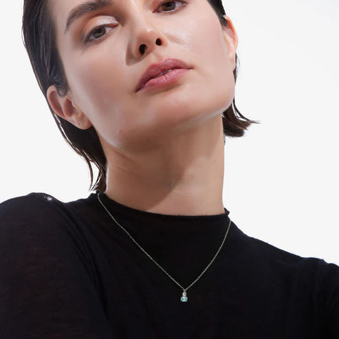 Collar corto cristal azul en Plata baño Rodio de Clarity