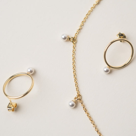 Collar corto cristales y perlas blanco en Plata de Charlotte Baño de oro 18k