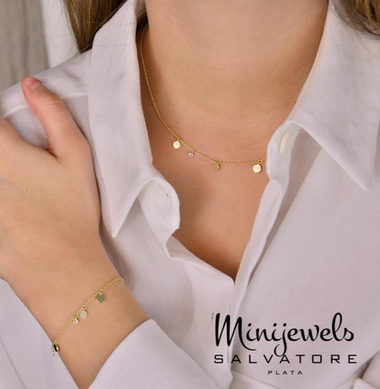 Pulsera Plata bañado en Oro 18 k Circonitas y chapitas