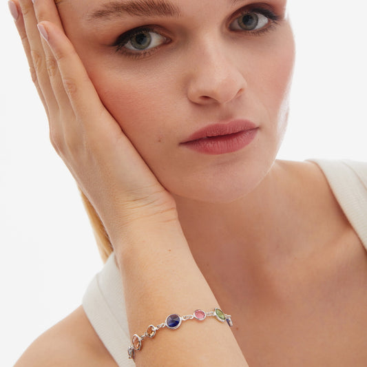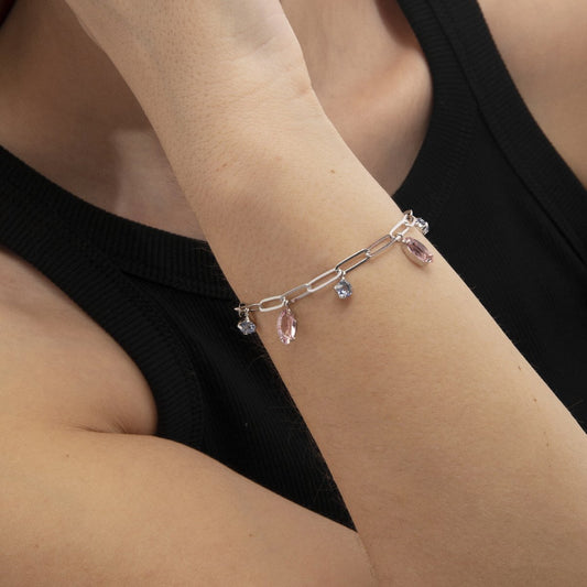 Pulsera ajustable marquesa color rosa elaborada en plata