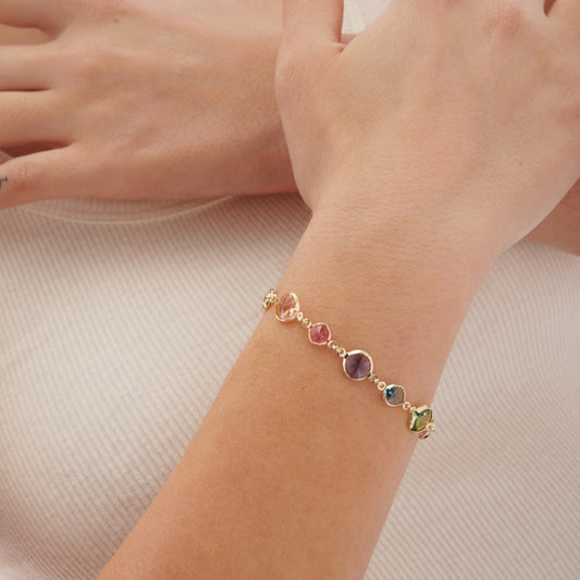 Pulsera ajustable lágrima color rosa bañada en oro rosa