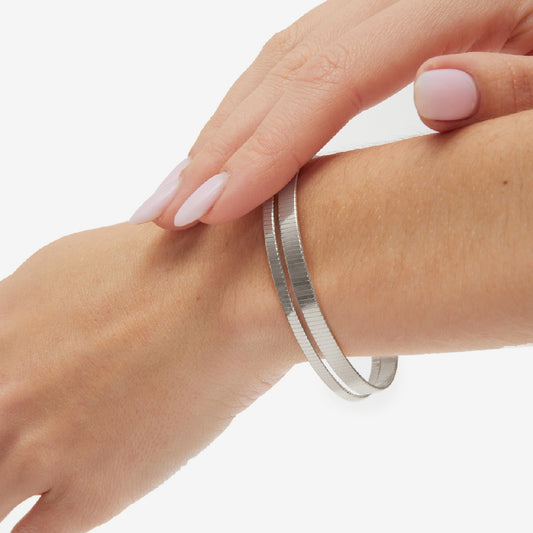 Pulsera doble brazalete rígido cadena aplanada elaborada en plata