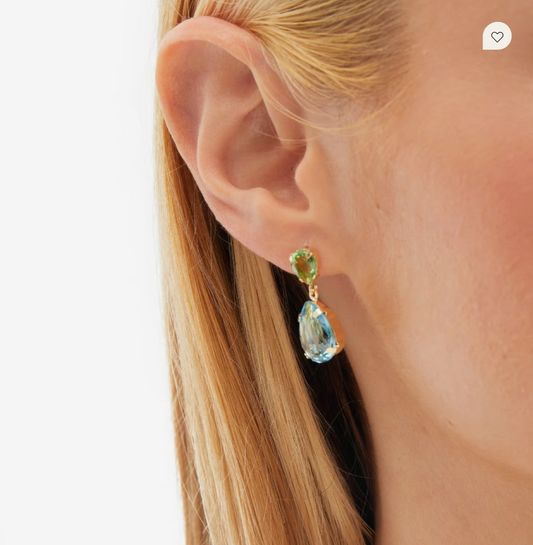 Par de aros largos bañados en oro Magnolia con azul en forma de lágrima