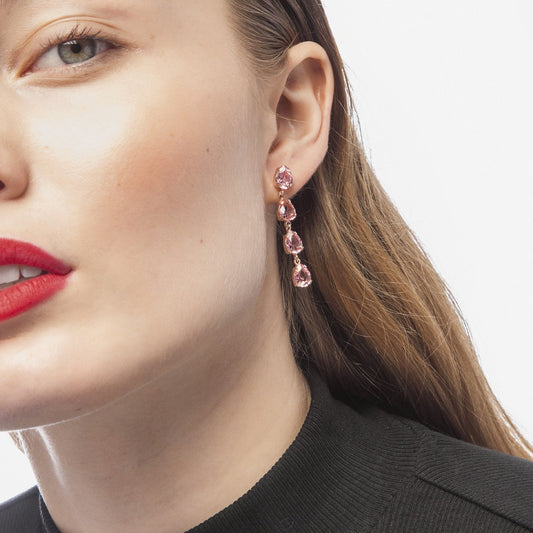 Par de aros largos lágrima color rosa bañados en oro rosa