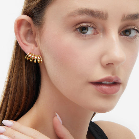 Par de Aros cortos 6 bandas bañados en oro