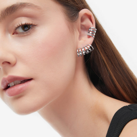 Par de Aros cortos 6 bandas elaborados en plata