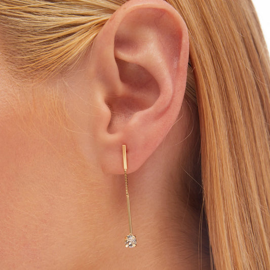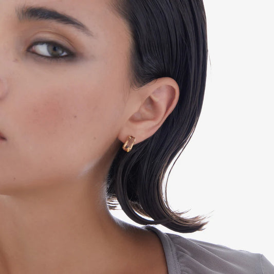 Pendientes botón rectángulo cristal en Plata baño Oro de Inspire