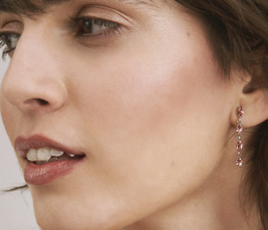 Par de Aros cristales light rose de Las Estaciones elaborado en plata.