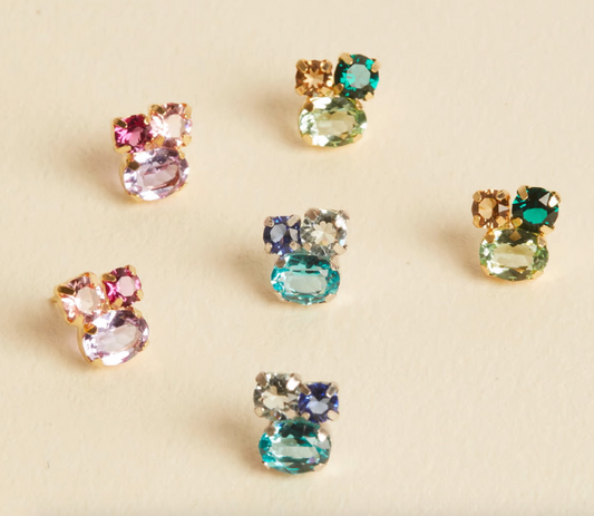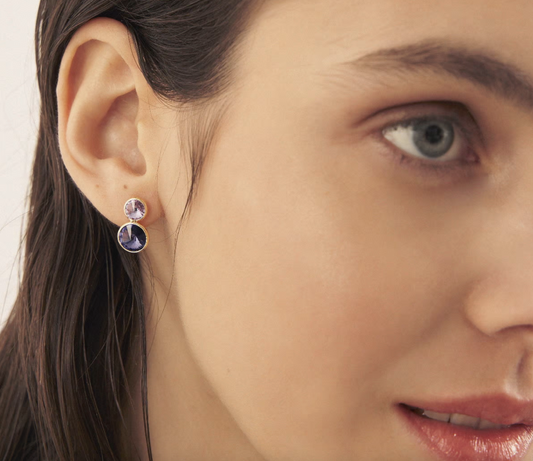 Par de Aros cristal doble violet y tanzanite de Basic bañados en Oro