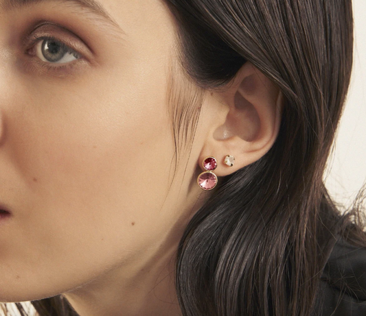 Par de Aros cristal doble fuchsia y light rose XS de Basic bañados en Oro