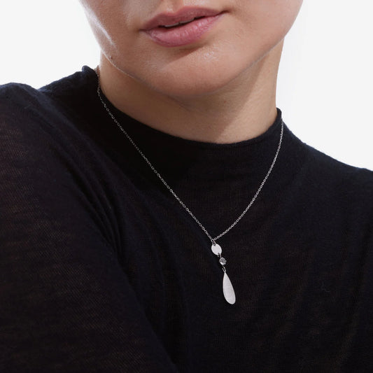 Collar largo cristal blanco en Plata baño Rodio de Noise