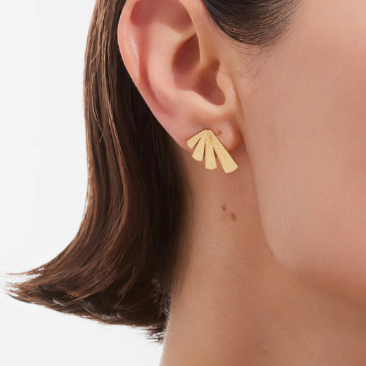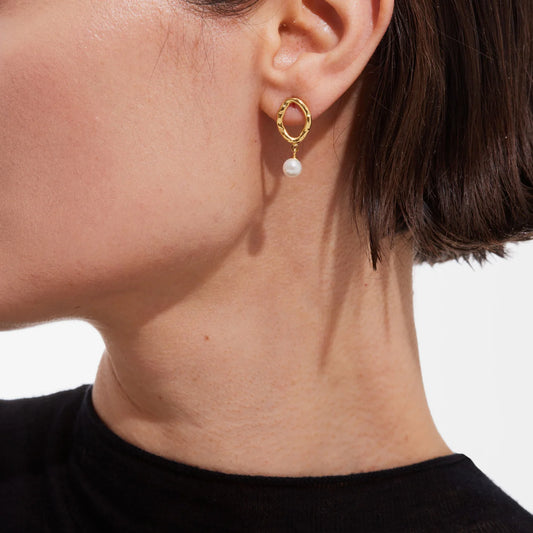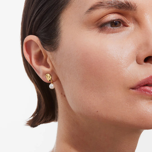 Par de aros cortos hoja pequeña perla en Plata de Radiance