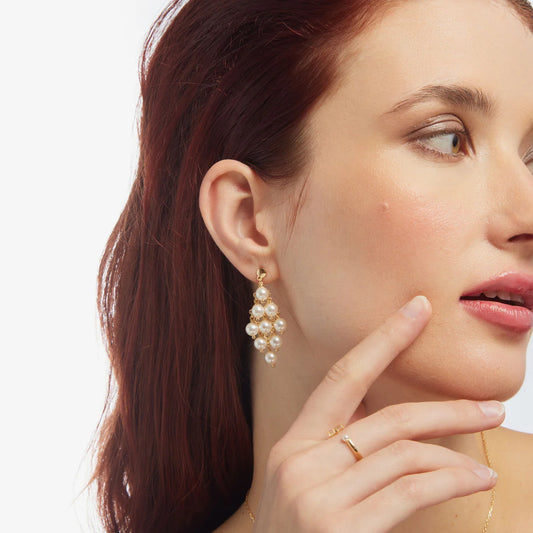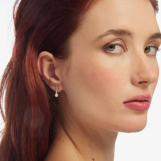 Par de aros corto cascada cristales y perlas en Plata de Aurore