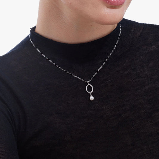 Collar corto cascada cristales y perlas en Plata de Aurore