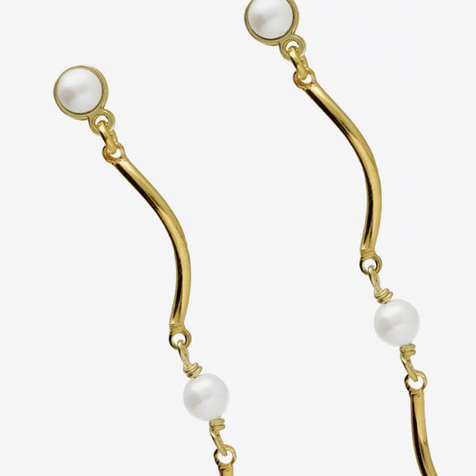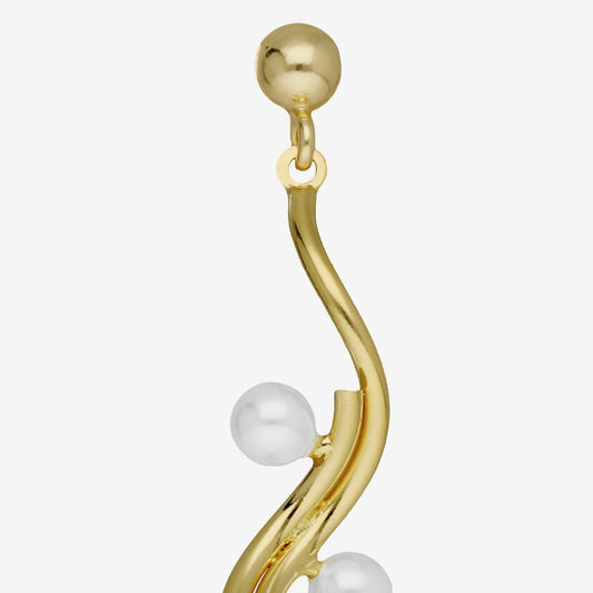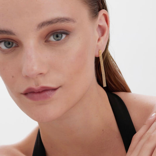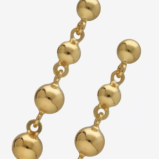 Par de aros largos cadena de malla plana esferas bañado en oro de Empire