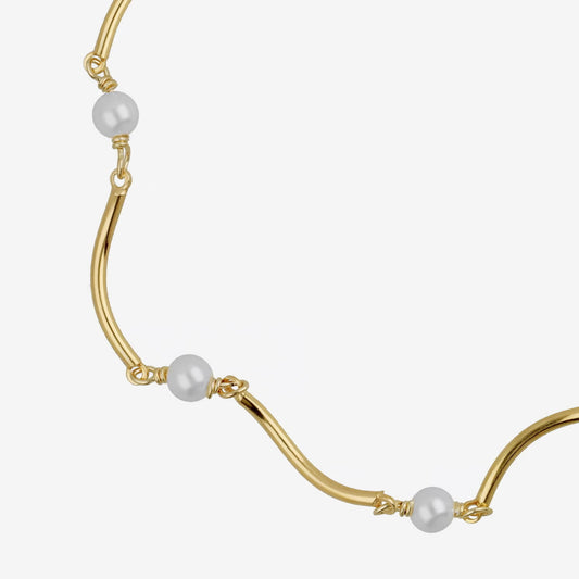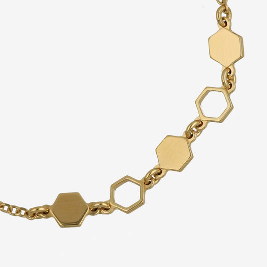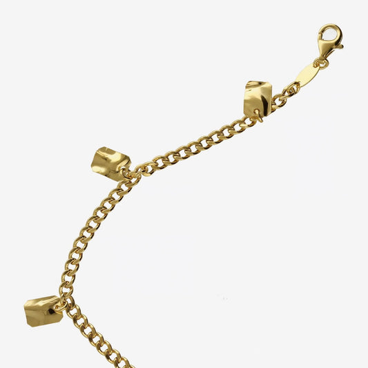 Pulsera cadena barbada con abalorios rectangulares bañado en oro