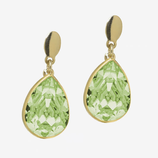 Par de aros cortos lágrima color verde bañados en oro