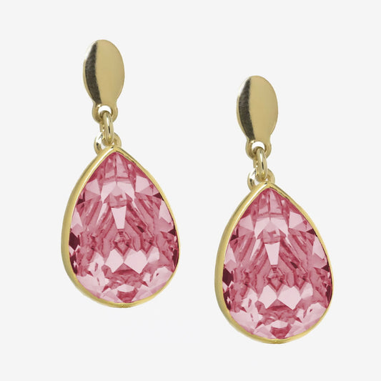 Par de aros cortos lágrima color rosa bañados en oro