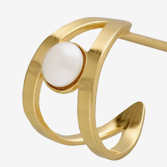 Par de aros doble con perla bañados en oro