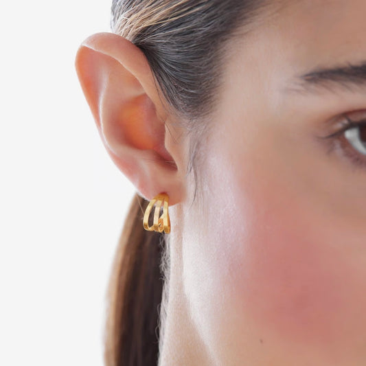 Par de aros aros triple bañados en oro