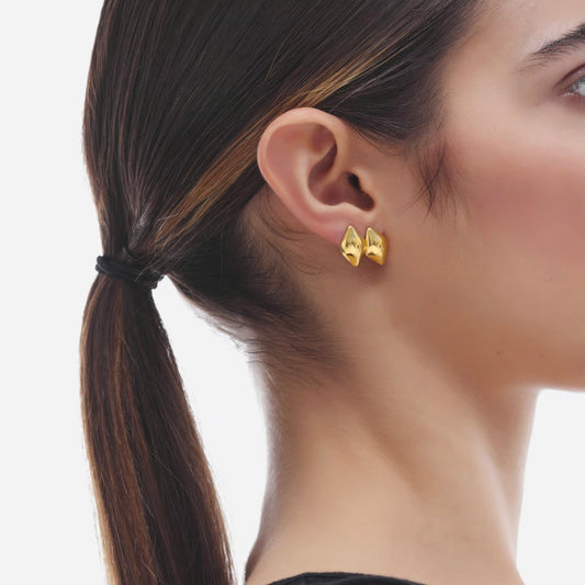 Par de aros rombo bañados en oro