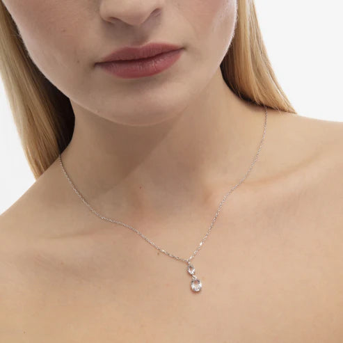 Collar corto de cristal y Plata de Ley bañada en Rodio. Largo: 45-50cm. Tamaño del motivo de 2,2x0,6cm diámetro aro: 1,6cm con forma de óvalo de la colección Gemma.