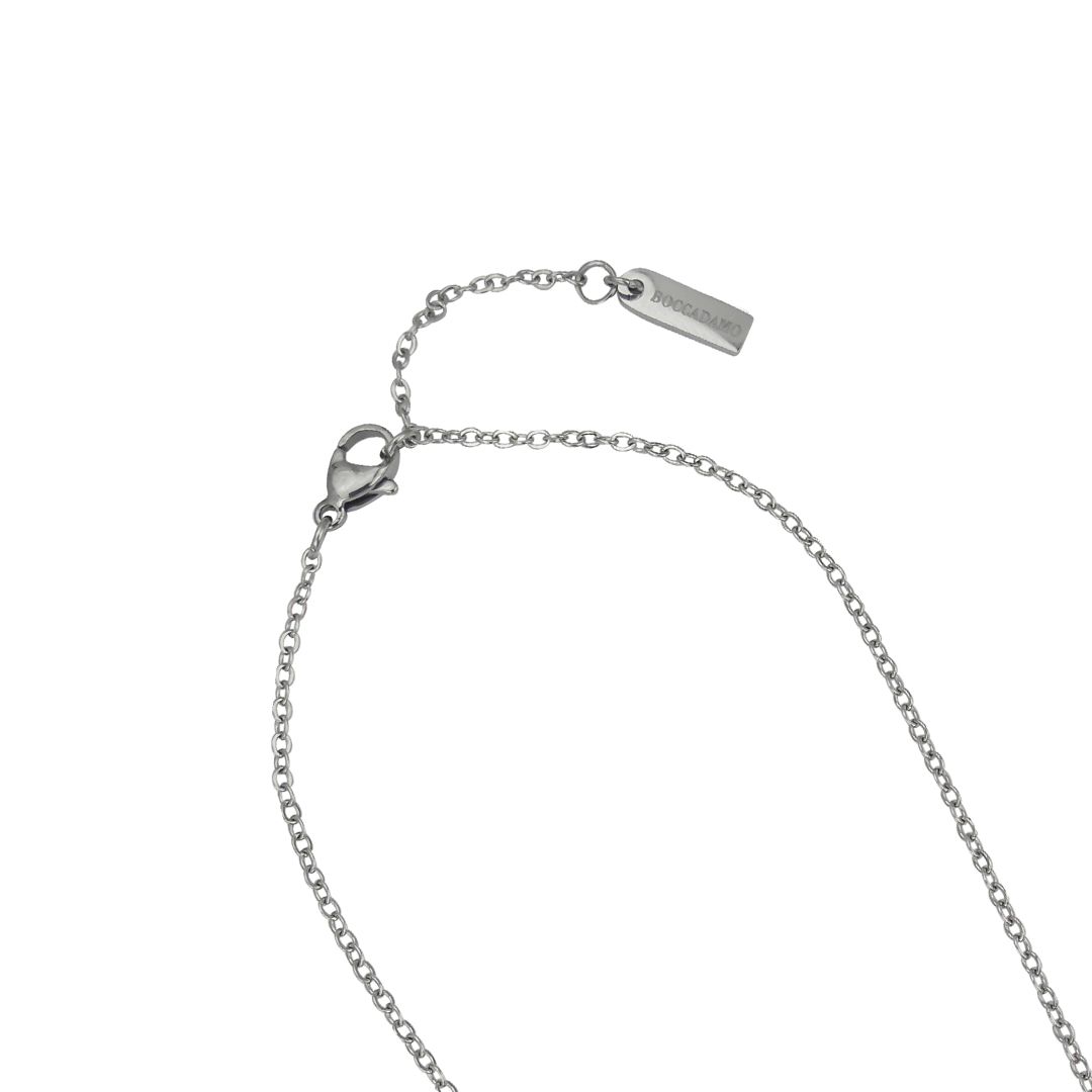 Collar de acero con placa colgante, circonitas laterales engastadas.