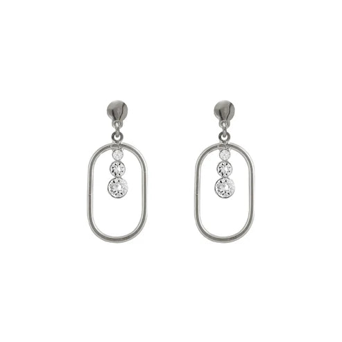 Par de Aros cortos óvalo Buenos Días con cristal en Plata Baño de rodio