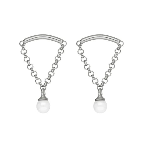 Par de Aros cortos perla en Plata de Milan Baño de rodio