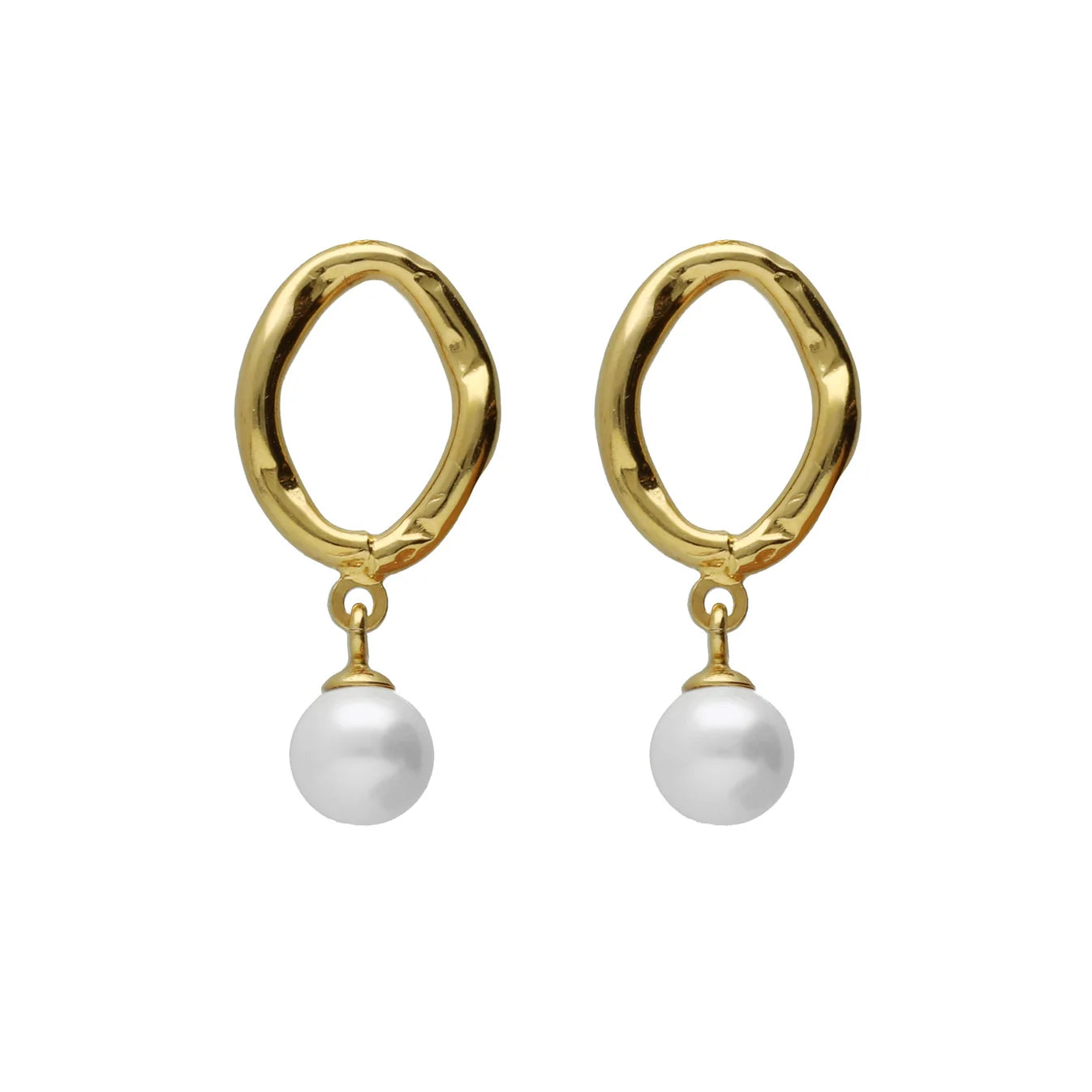 Pendientes largos con perla y plata de ley y el de baño de oro 18 K. Tamaño del motivo de 2,5x1,1cm de la colección Radiance.